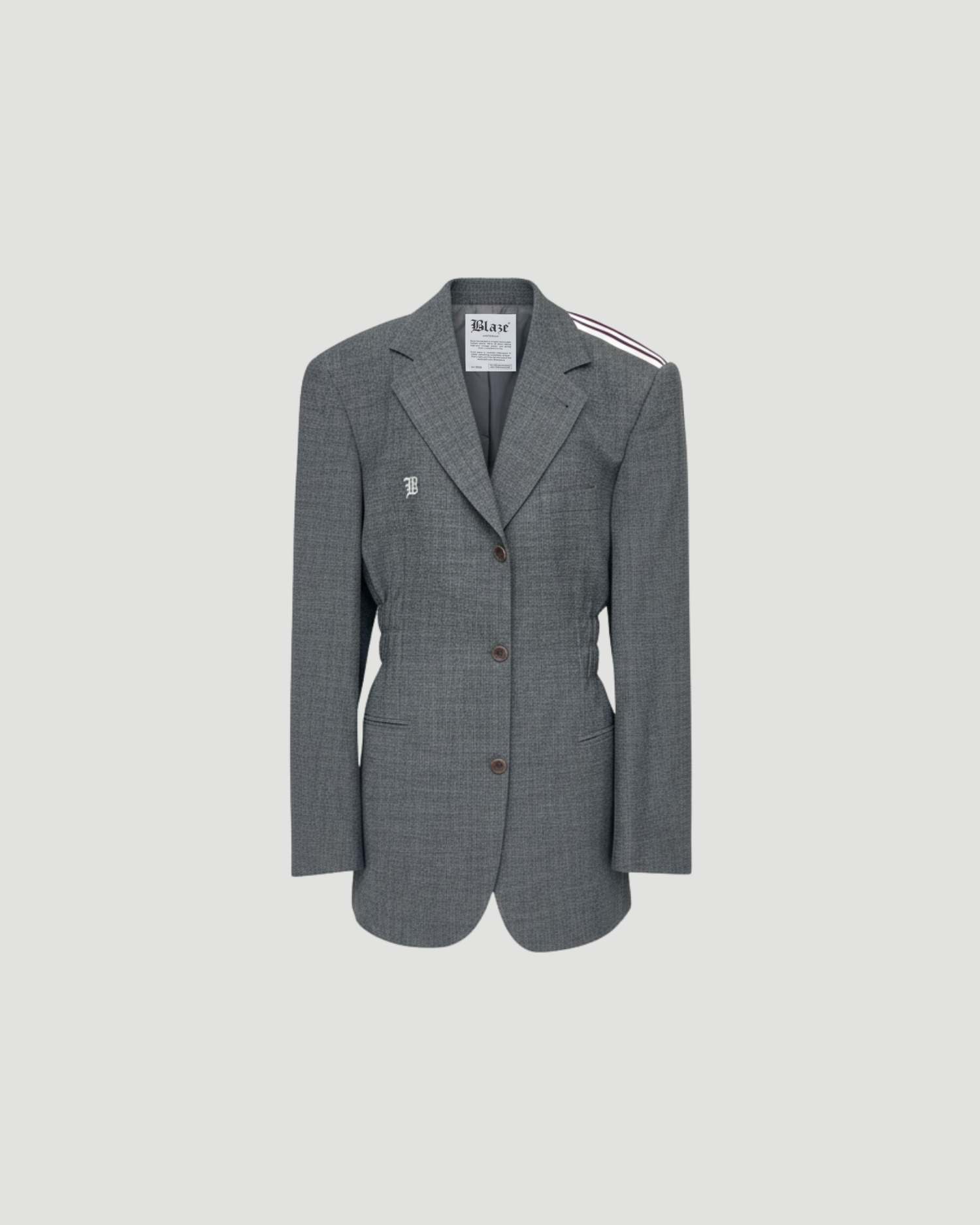 A modern blazer with Adidas stripes on the shoulders and a fitted waist. Sportswear meets tailoring in this hybrid piece.