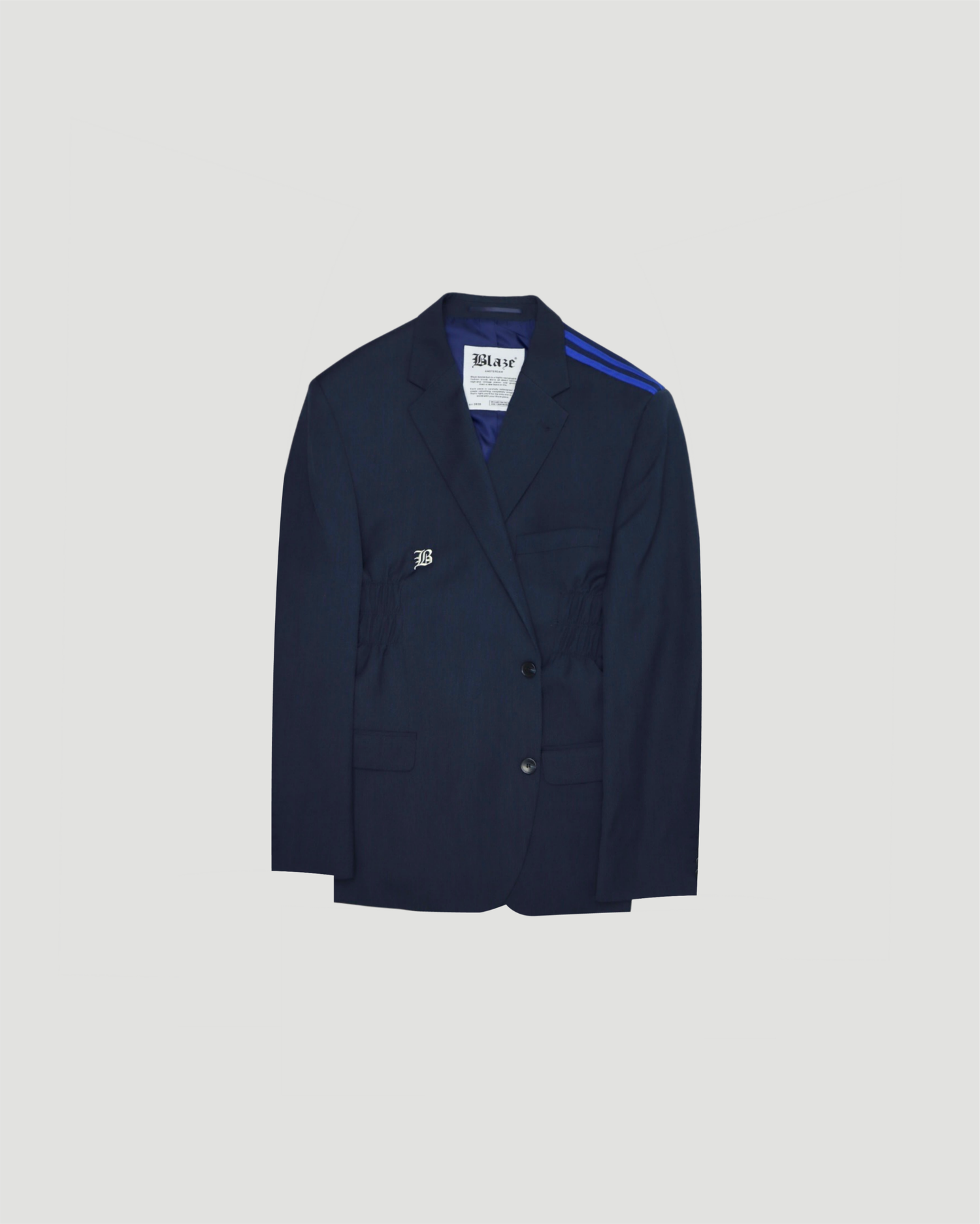 A modern blazer with Adidas stripes on the shoulders and a fitted waist. Sportswear meets tailoring in this hybrid piece.
