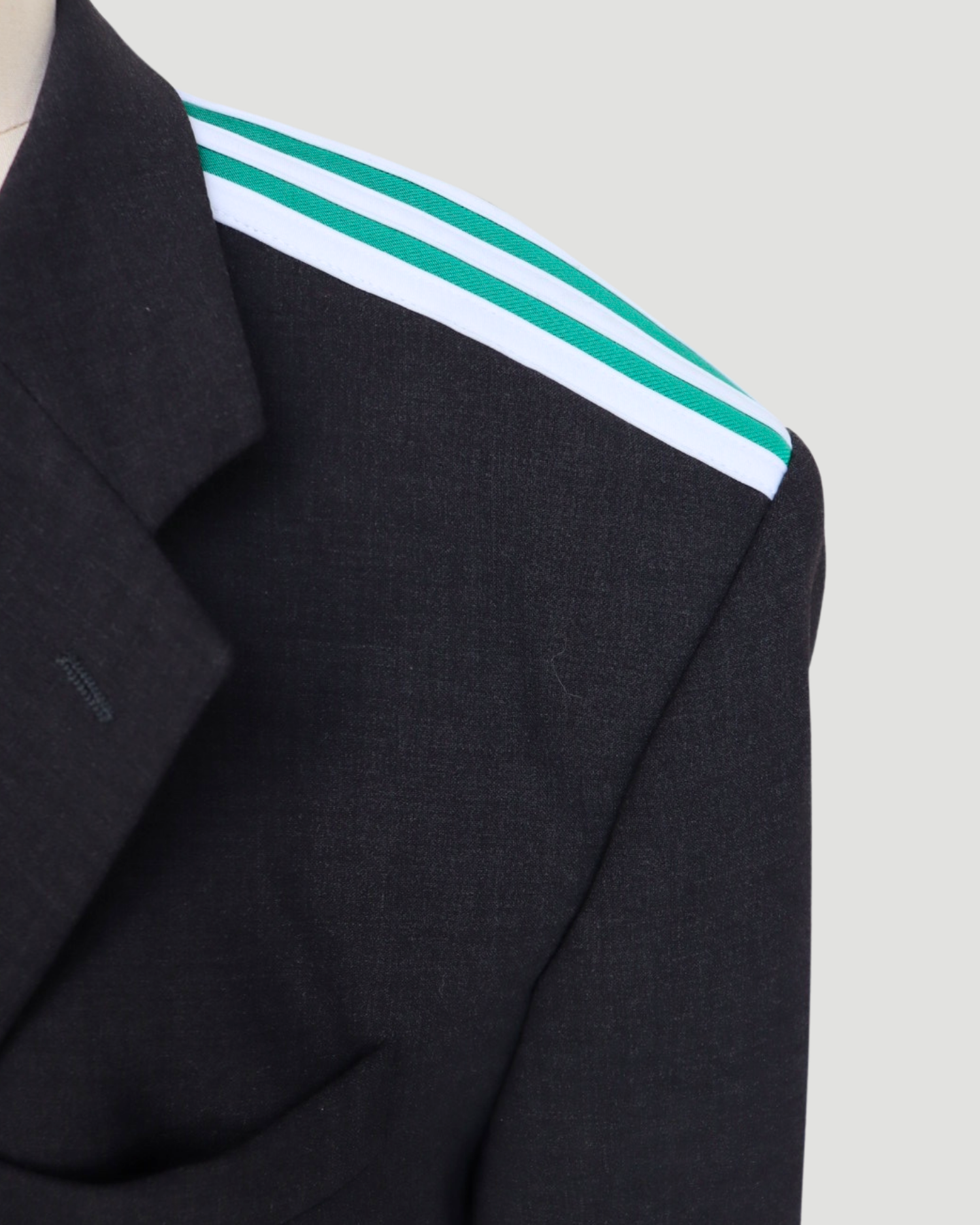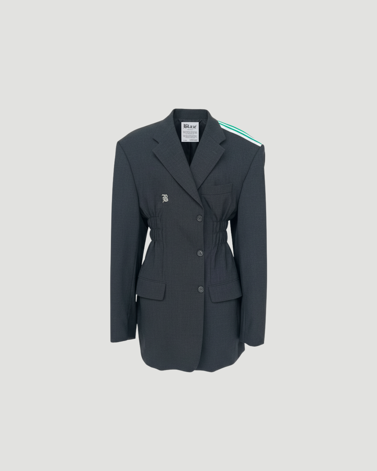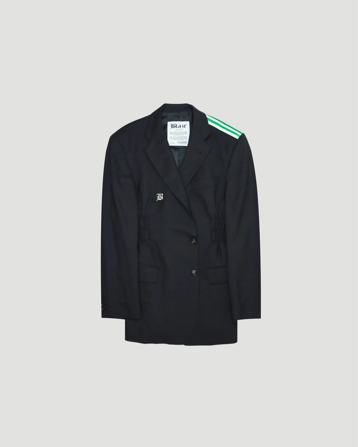 A modern blazer with Adidas stripes on the shoulders and a fitted waist. Sportswear meets tailoring in this hybrid piece.