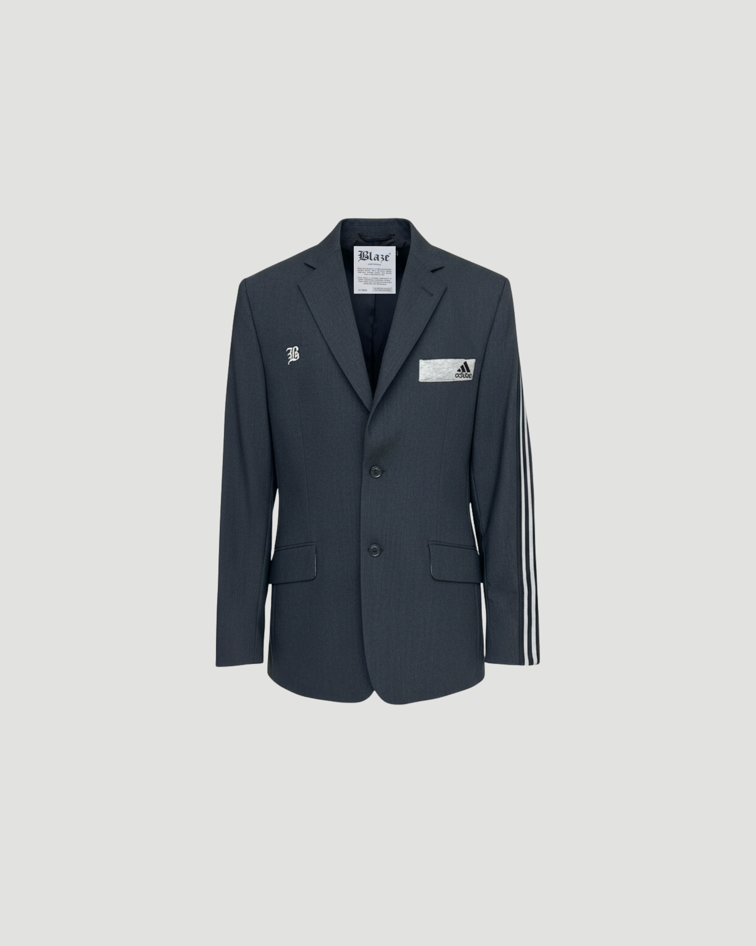 Pre-loved Grey Blazer | Redesigned with vintage adidas | Featuring B-logo embroidery