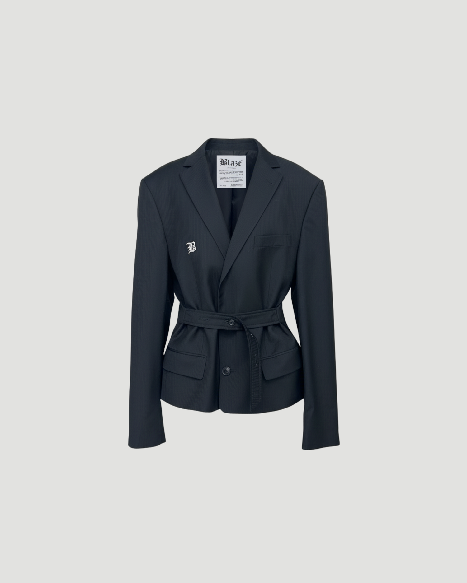 Black Blazer | Redesigned with a belt | Featuring B-logo embroidery