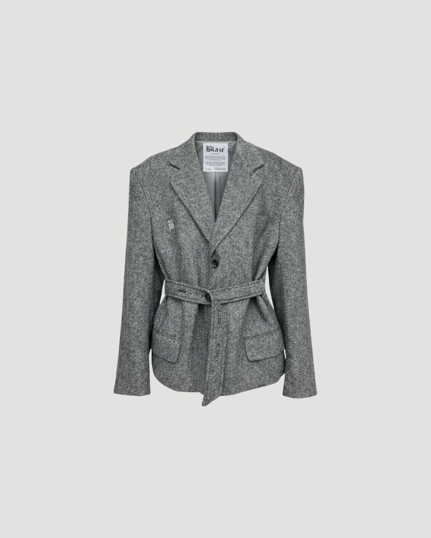 Grey Blazer | Redesigned with a belt | Featuring B-logo embroidery