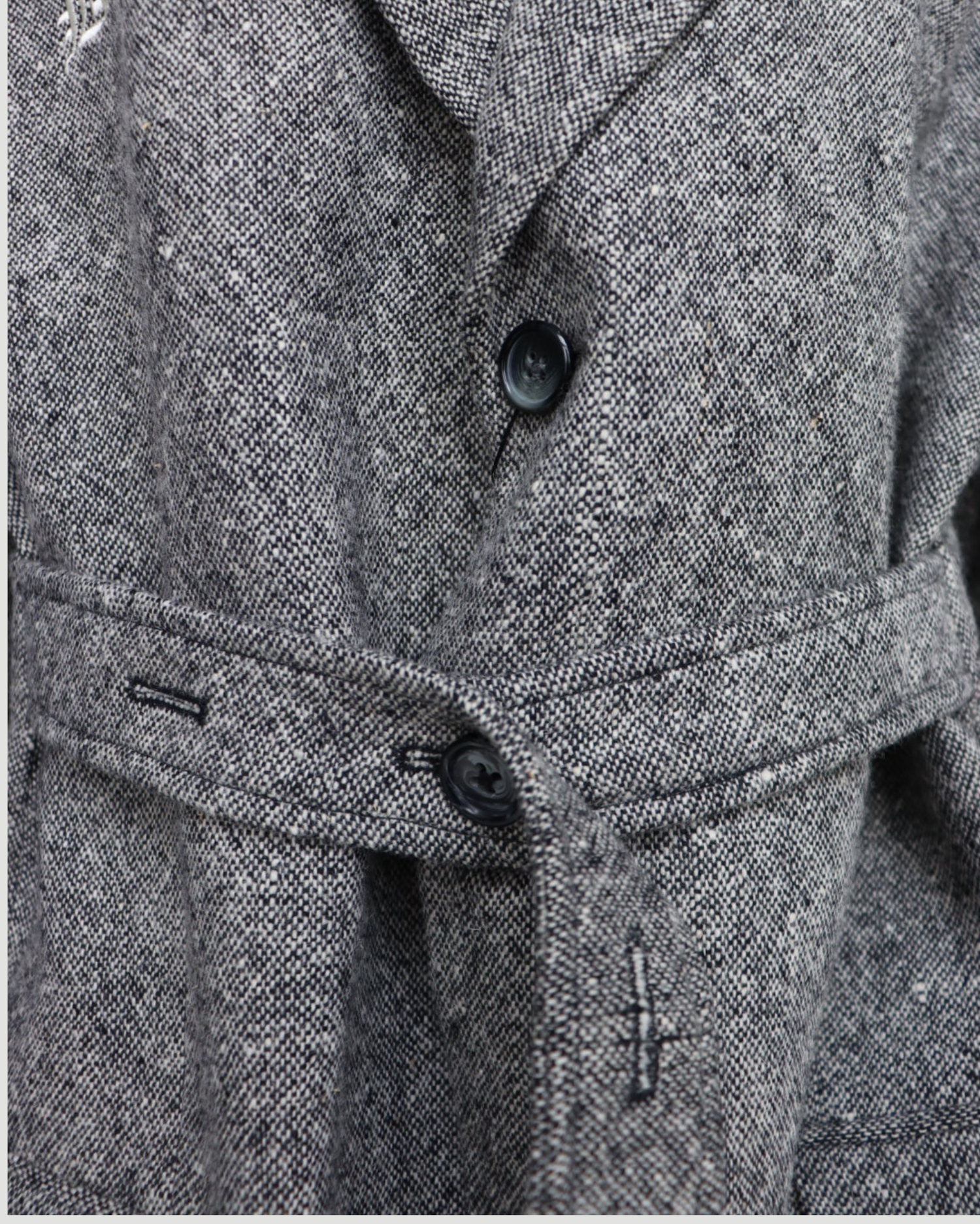 Tailored blazer featuring a belt made from the same fabric. The belt can be tied at the front or back for flexible styling and a strong silhouette.