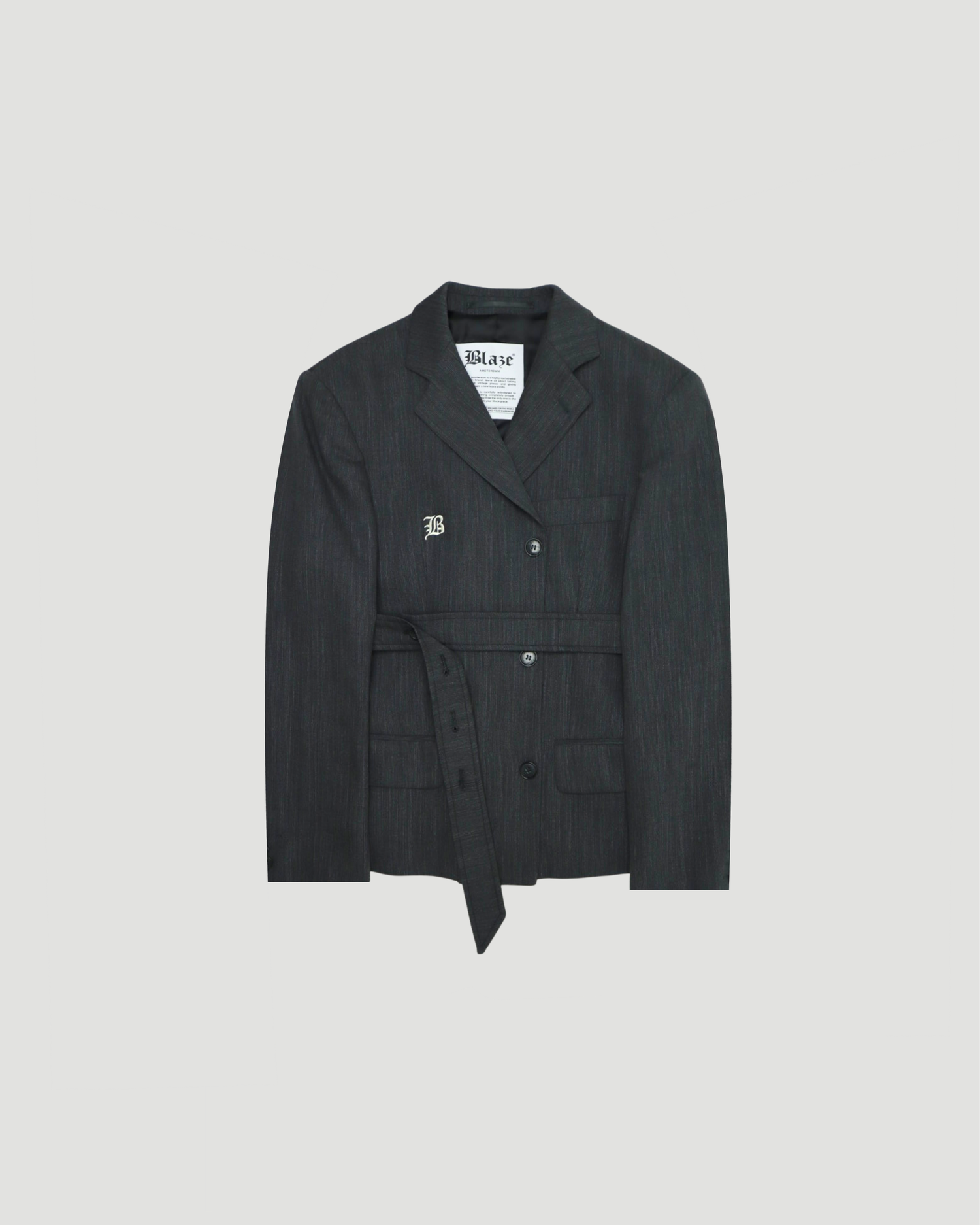 Dark Grey Blazer | Redesigned with a belt | Featuring B-logo embroidery