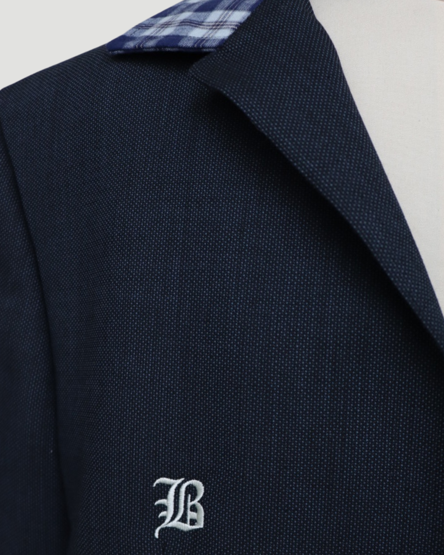 A tailored blazer with subtle shirt-like details. The design combines sharp lines with softer, casual shirt accents.