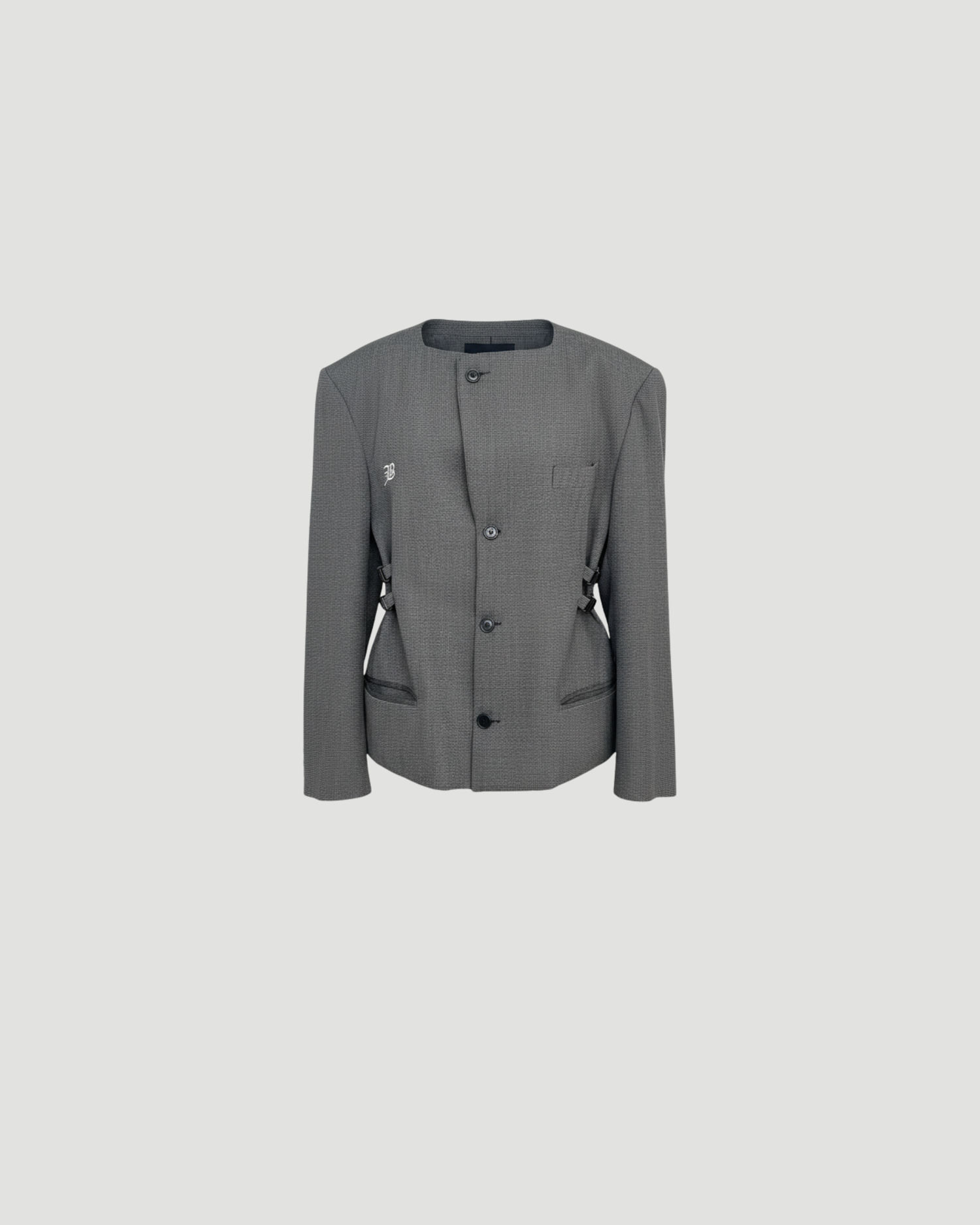 Built on the same silhouette as the Cinch Blaze, this version is cinched at the waist using delicate buckles. The removal of the collar and clean front button give it that same refined shape.