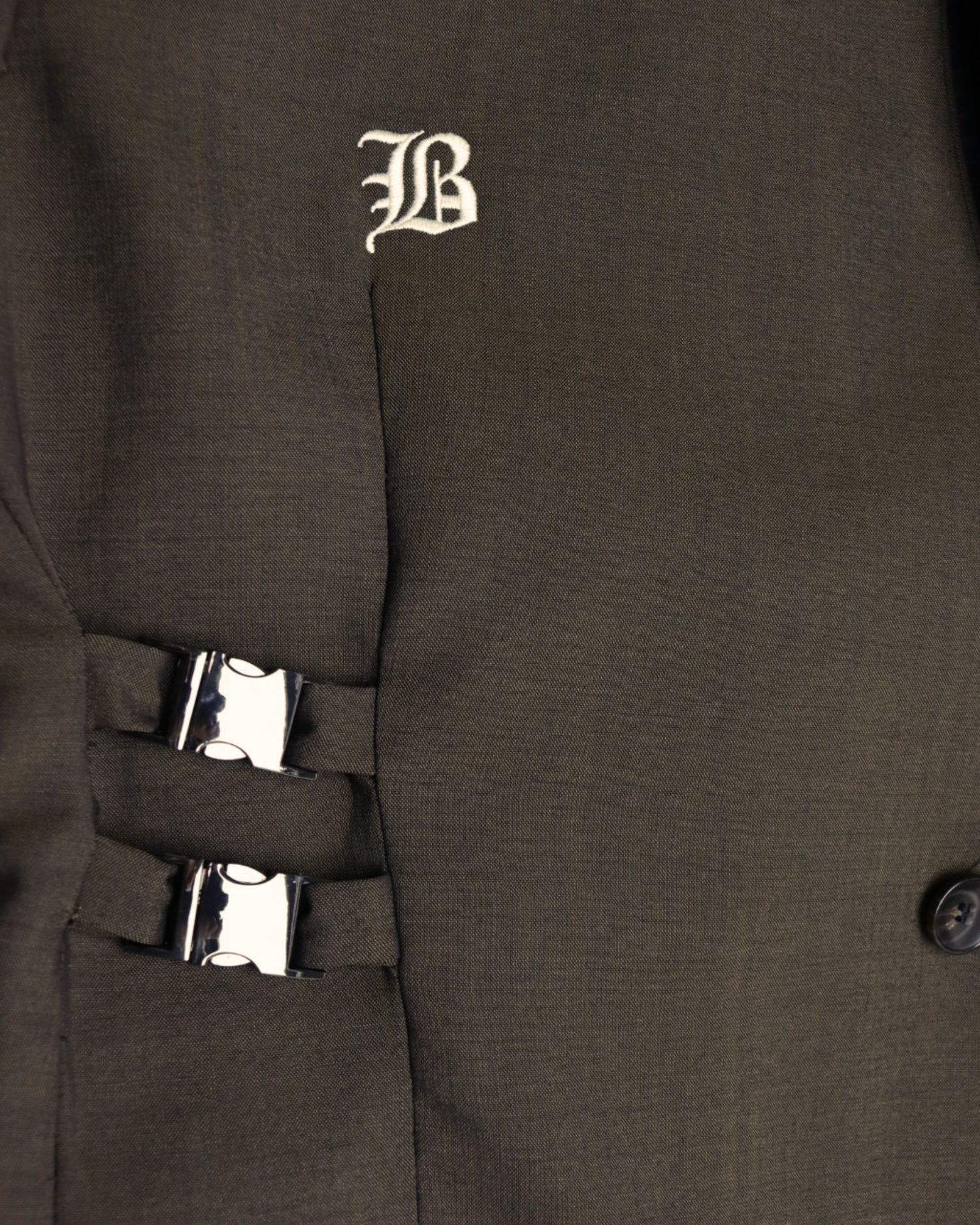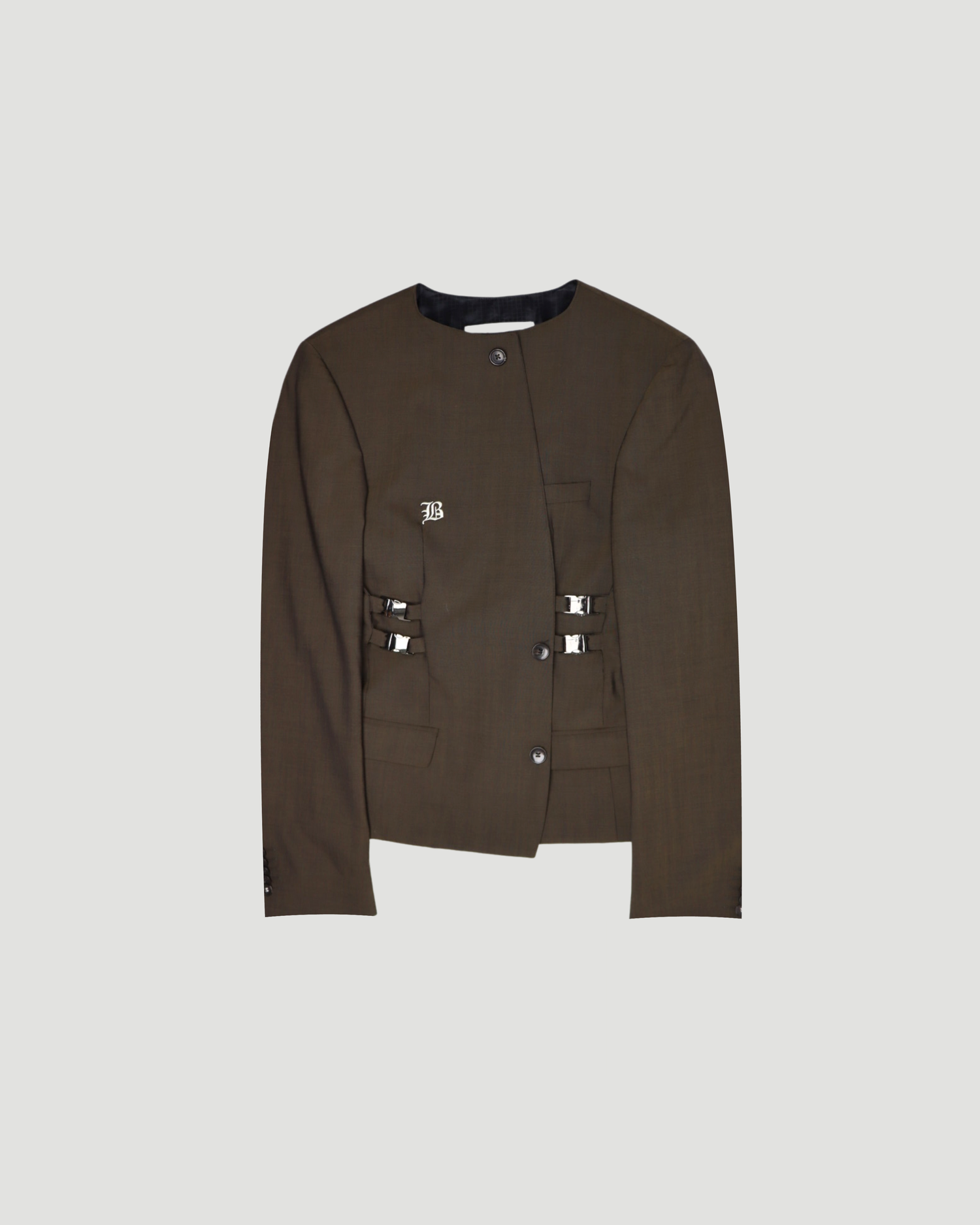 Built on the same silhouette as the Cinch Blaze, this version is cinched at the waist using delicate buckles. The removal of the collar and clean front button give it that same refined shape.