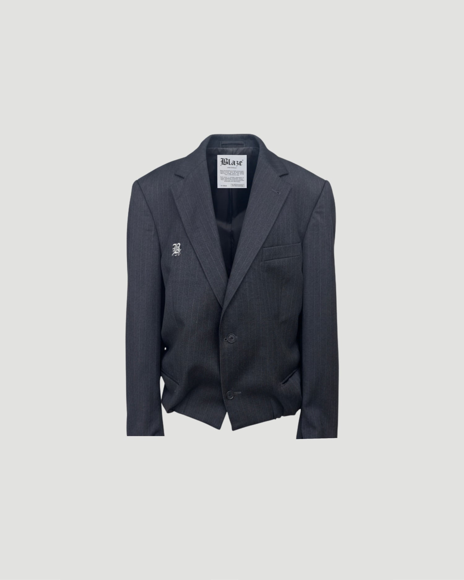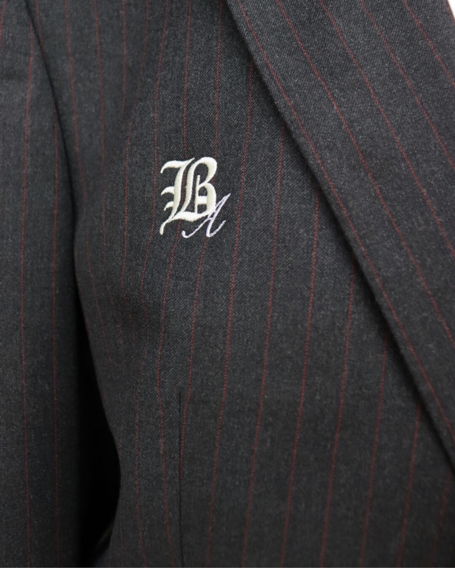 Pre-loved Grey with red pin stripe Blazer | Redesigned by Anke | Featuring B-logo embroidery