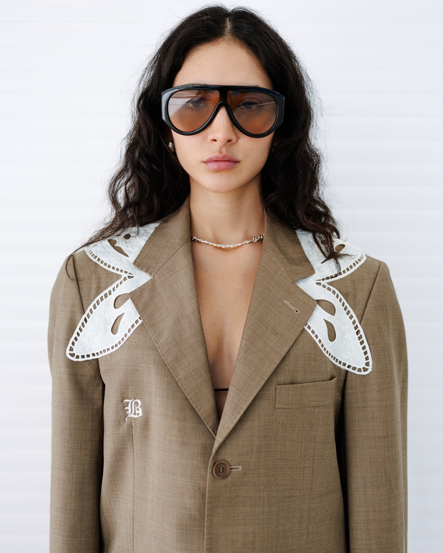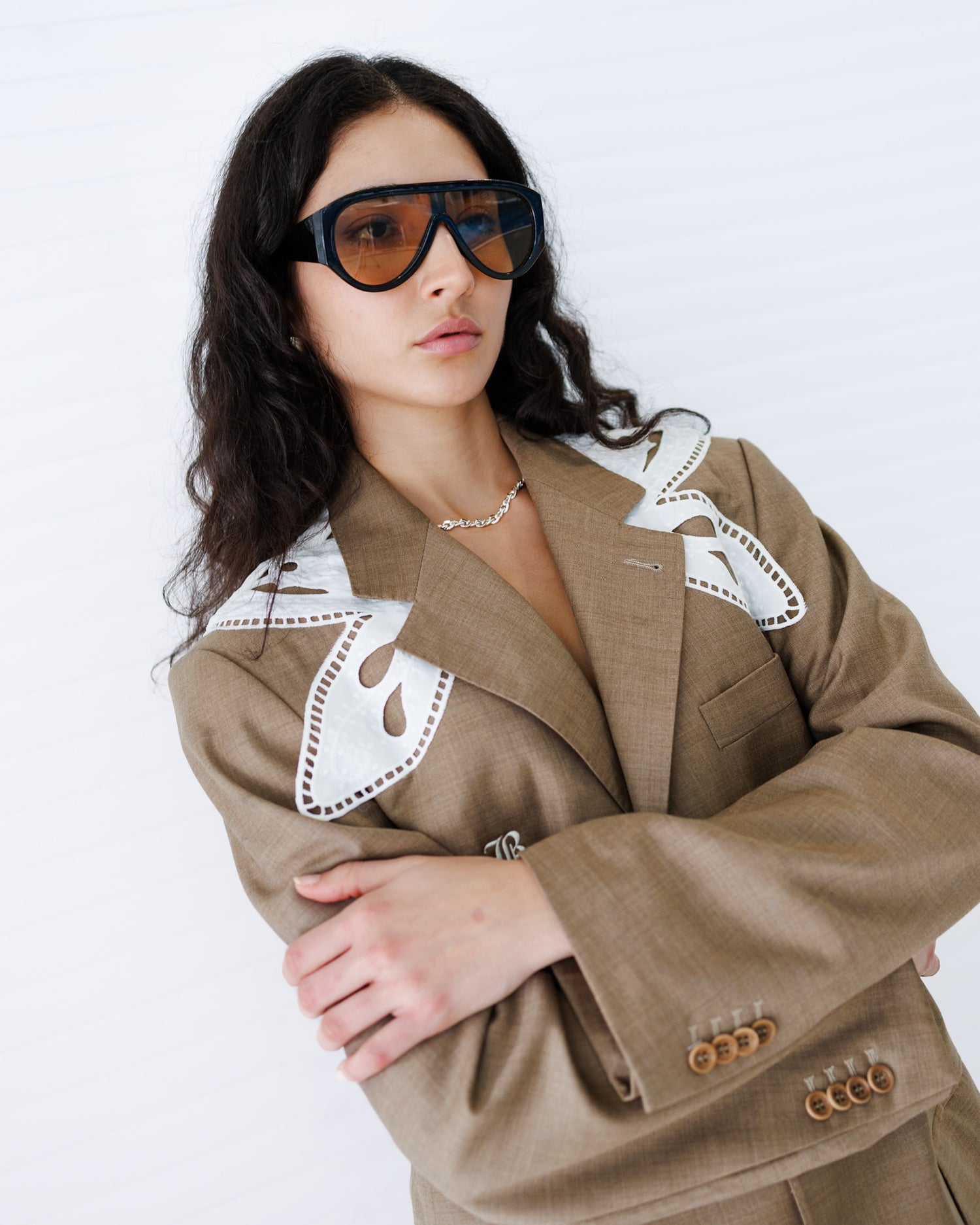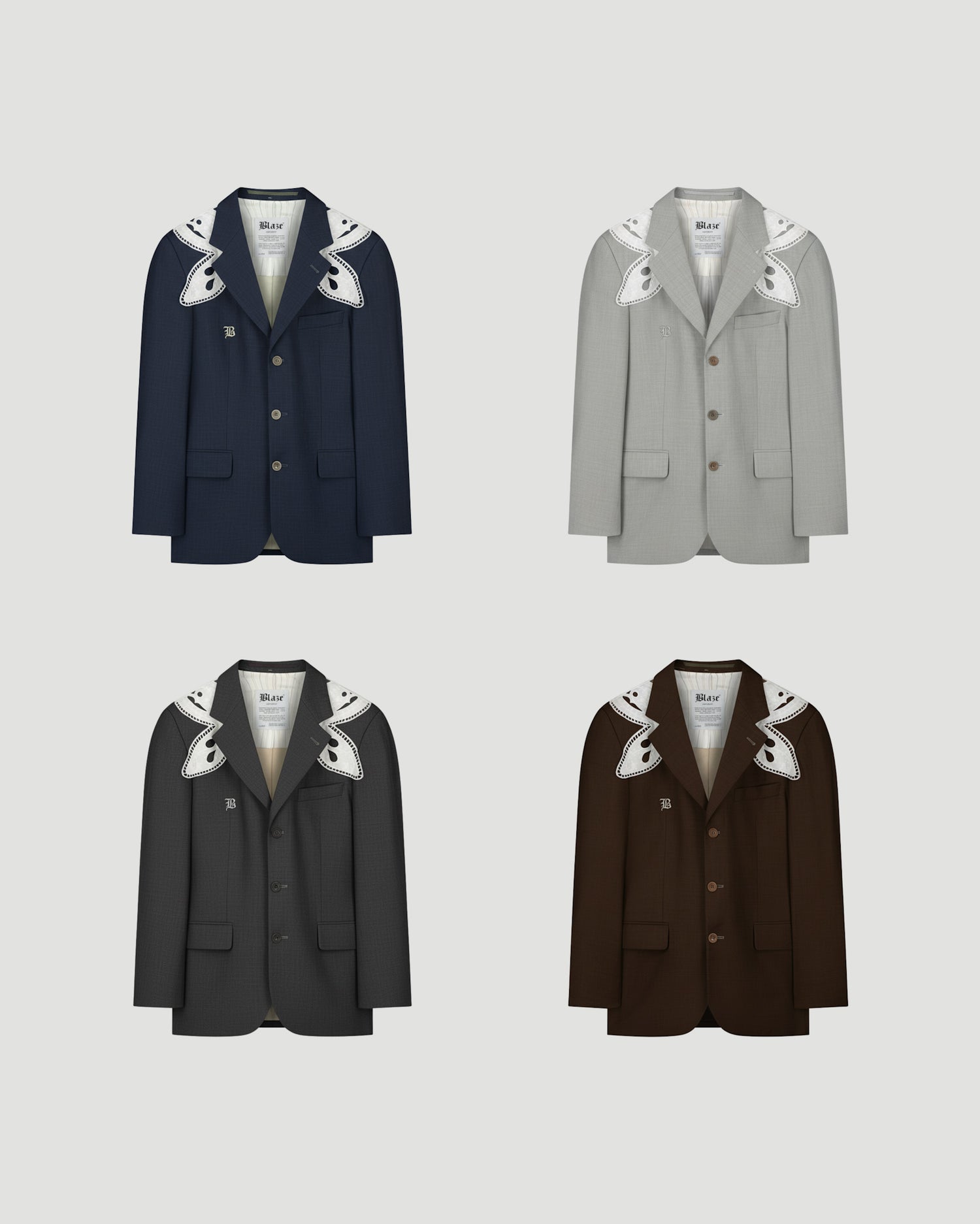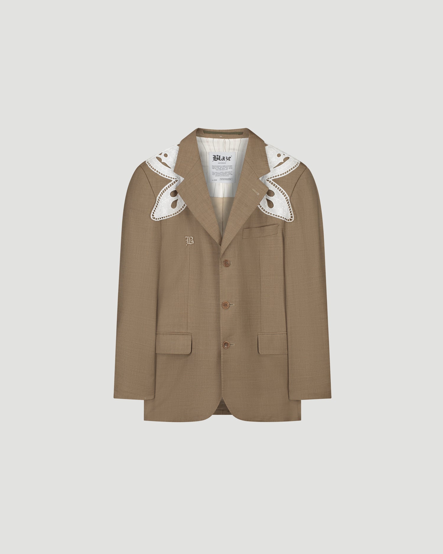 The Eyelet Blaze stands out with its beautifully embroidered collar, adding a delicate, artisanal touch to a clean-cut blazer. It’s a refined blend of craftsmanship and modern tailoring, making it instantly elegant.