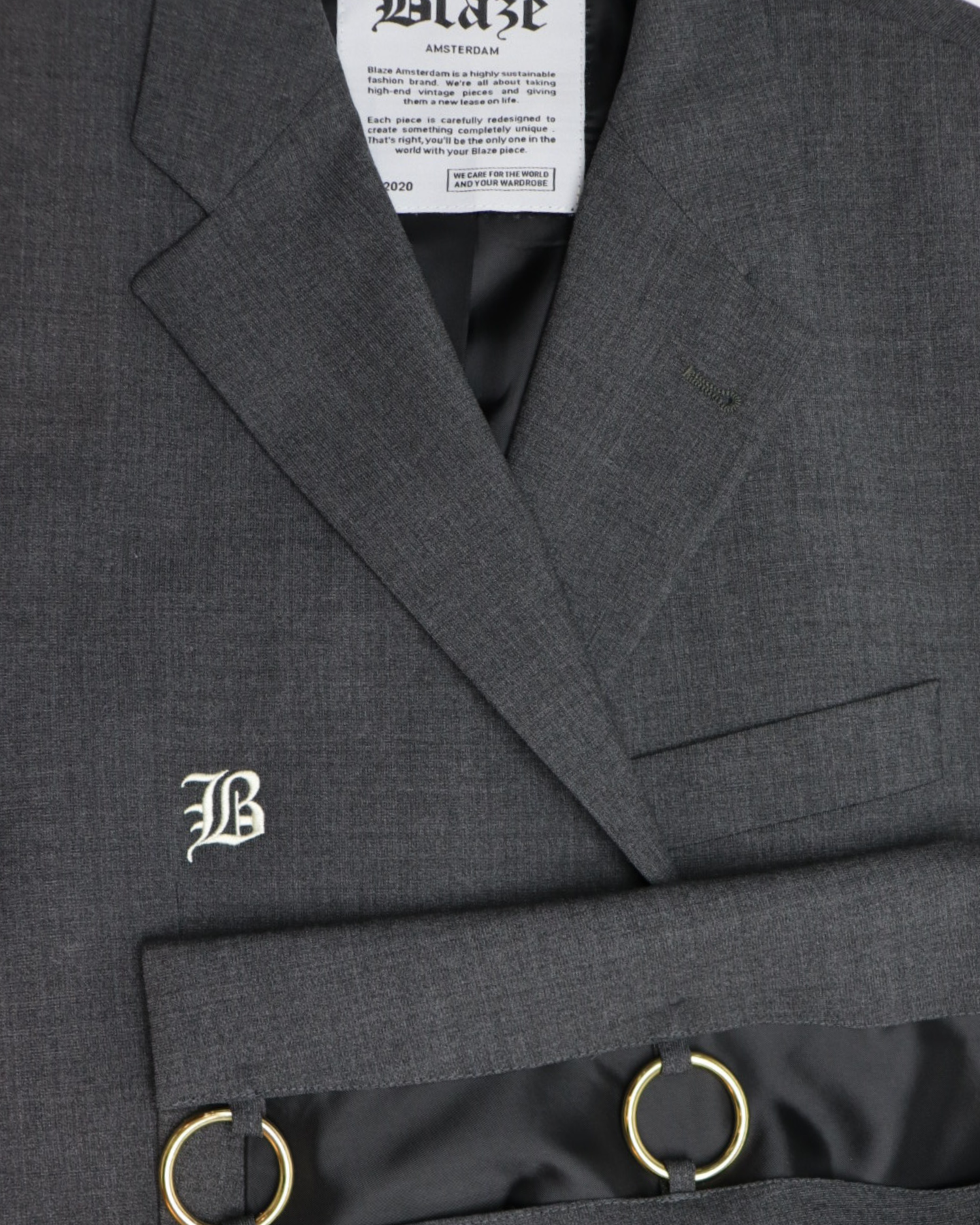 Grey Blazer | Redesigned with golden rings | Featuring B-logo embroidery