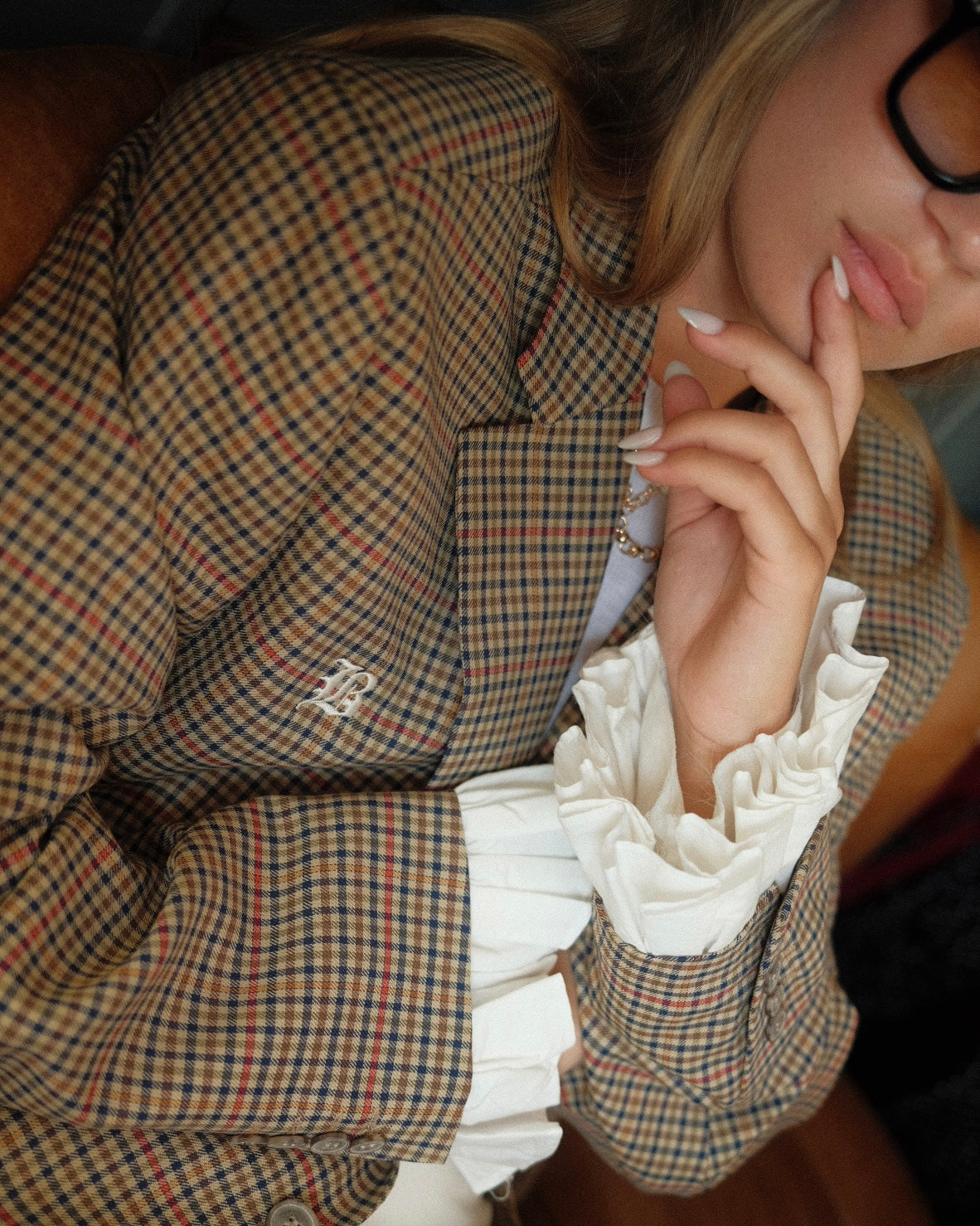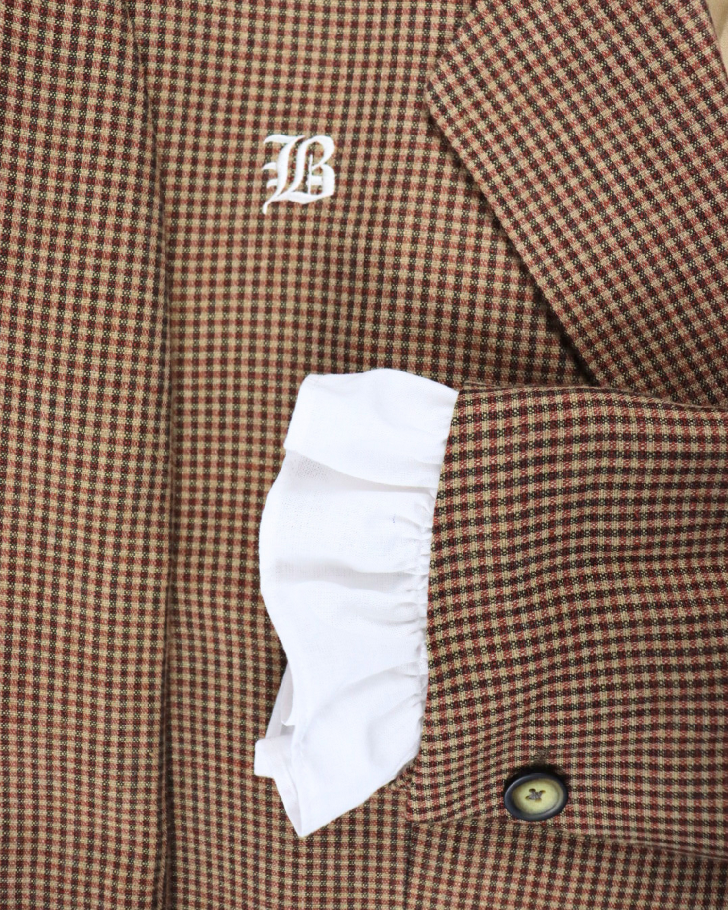 cotton ruffle sleeves. You can roll up your sleeves with straps.
