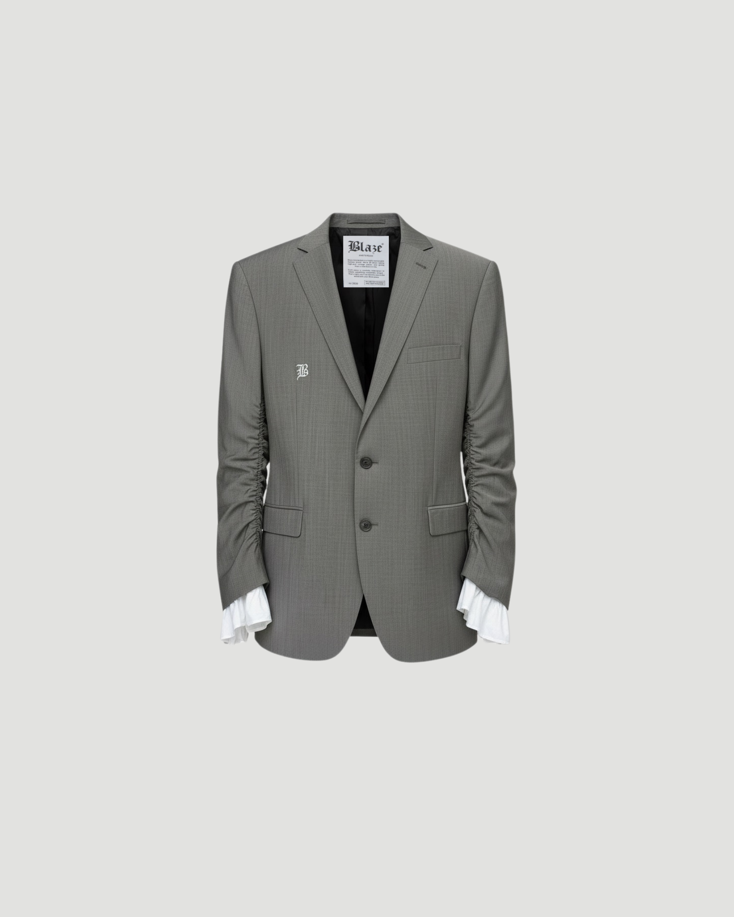 Grey Blazer | Redesigned with ruffles | Featuring B-logo embroidery