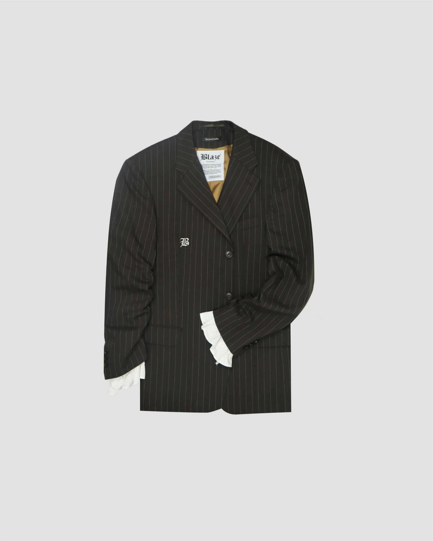 Dark Brown Blazer | Redesigned with ruffles | Featuring B-logo embroidery