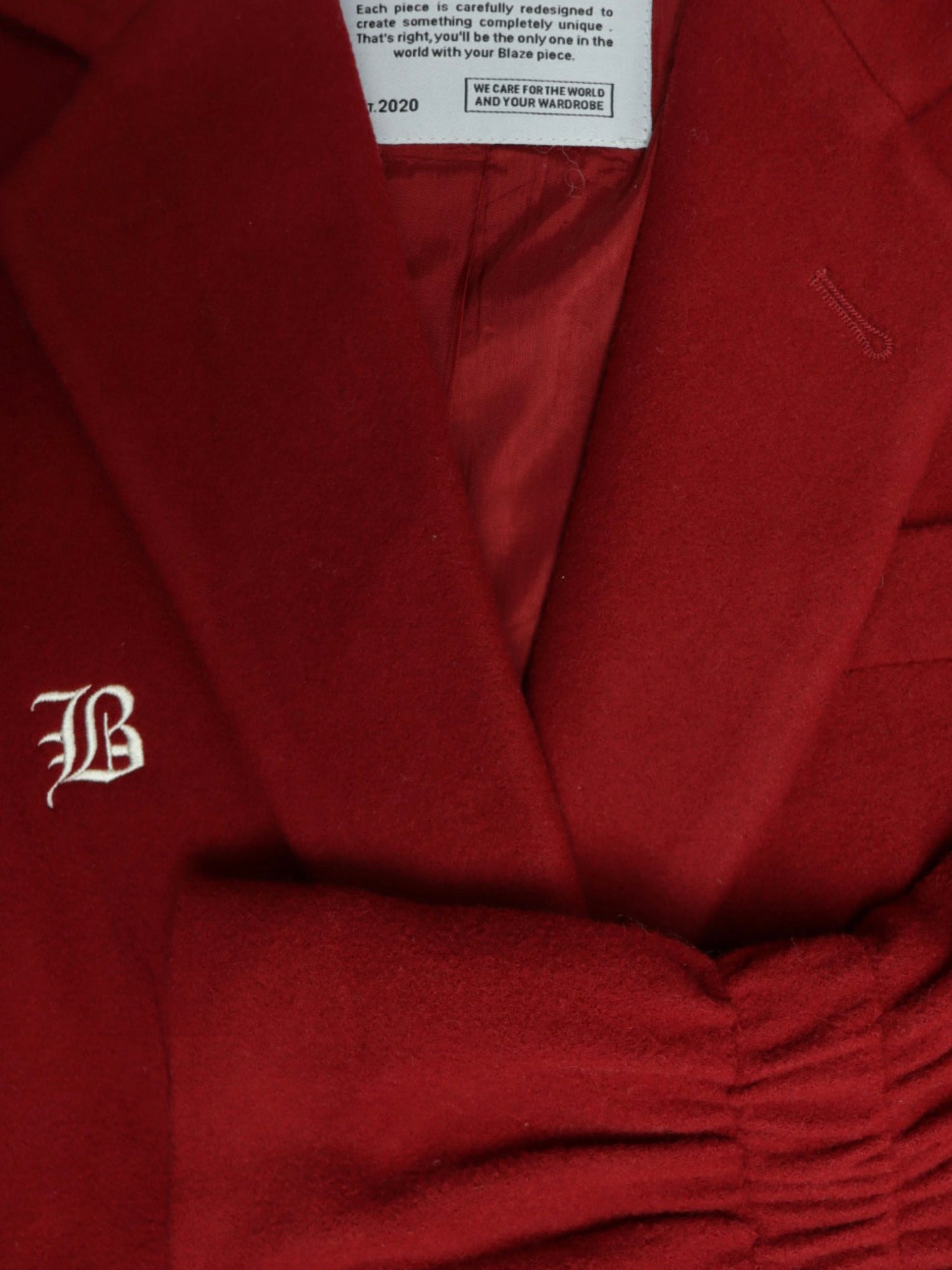 Pre-loved Red Blazer | Redesigned with scrunch effect sleeves | Featuring B-logo embroidery