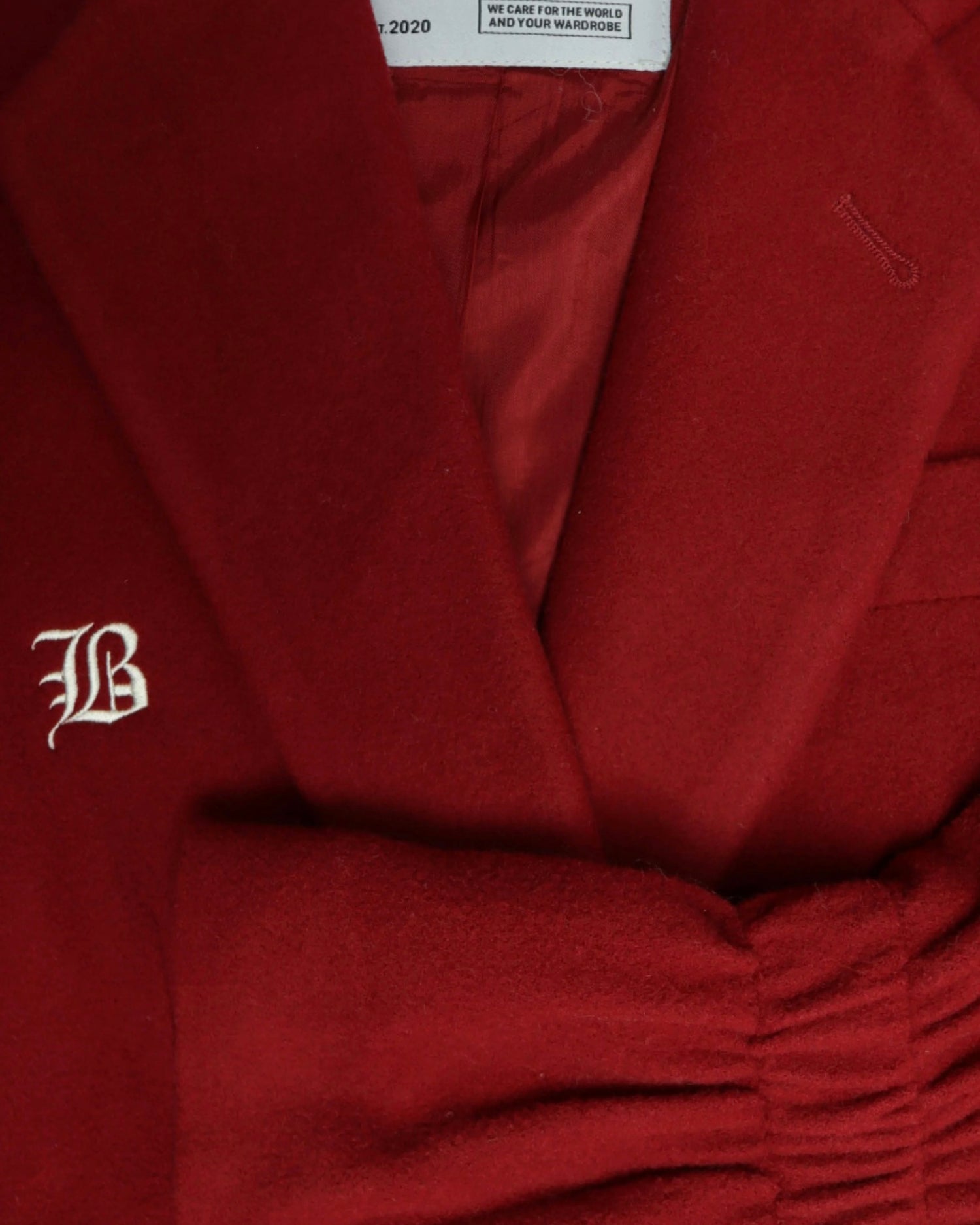 This scrunched-sleeve blazer wraps asymmetrically across the front, fastening off-center for sleek, tailored fit. Its flared cuffs give it a a powerful and precise in its movement.