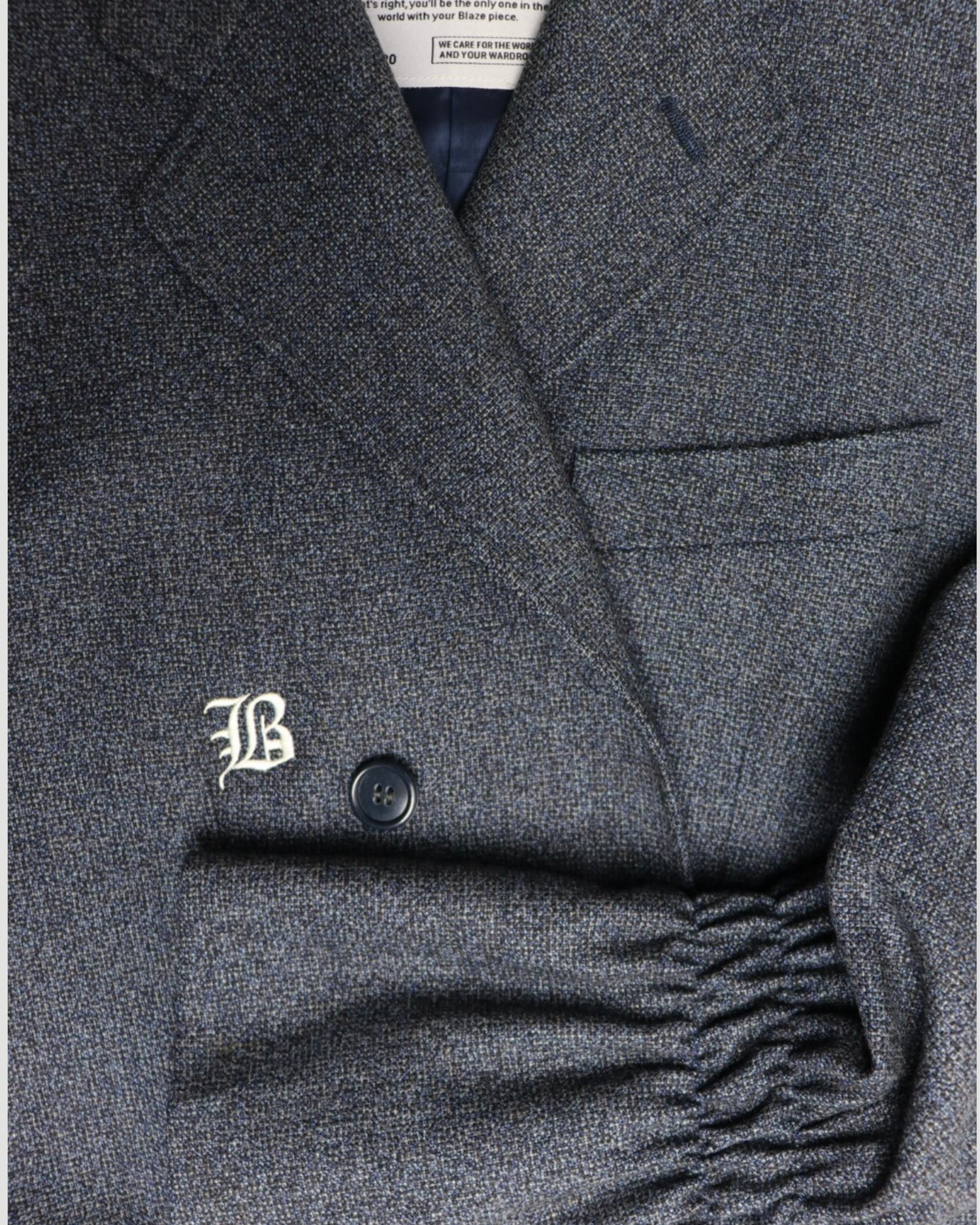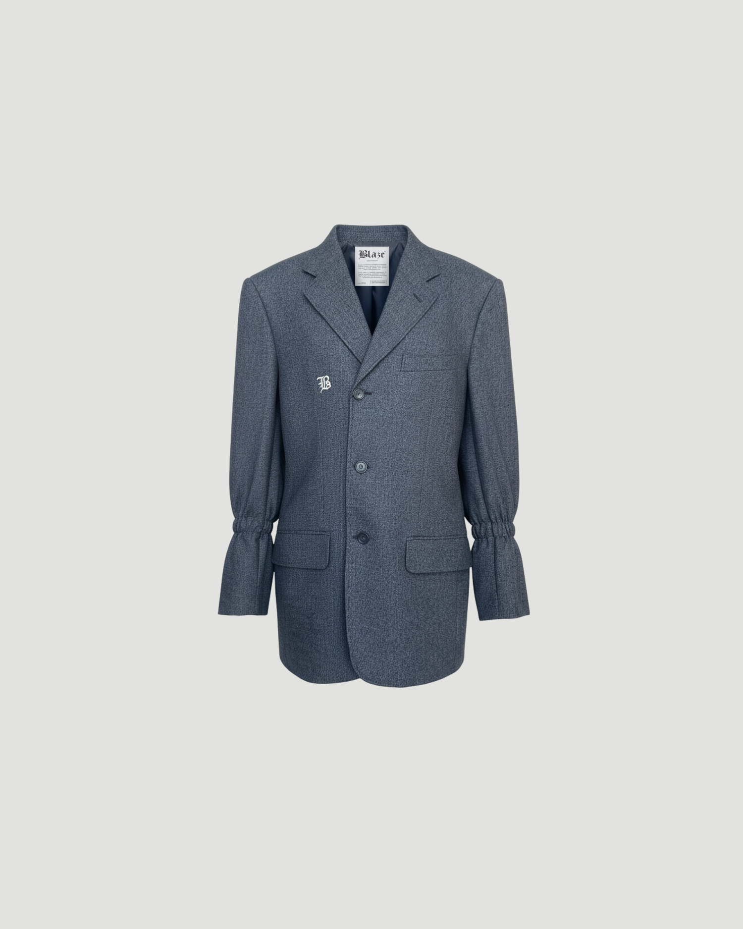 Pre-loved Blue Blazer | Redesigned with scrunch effect sleeves | Featuring B-logo embroidery